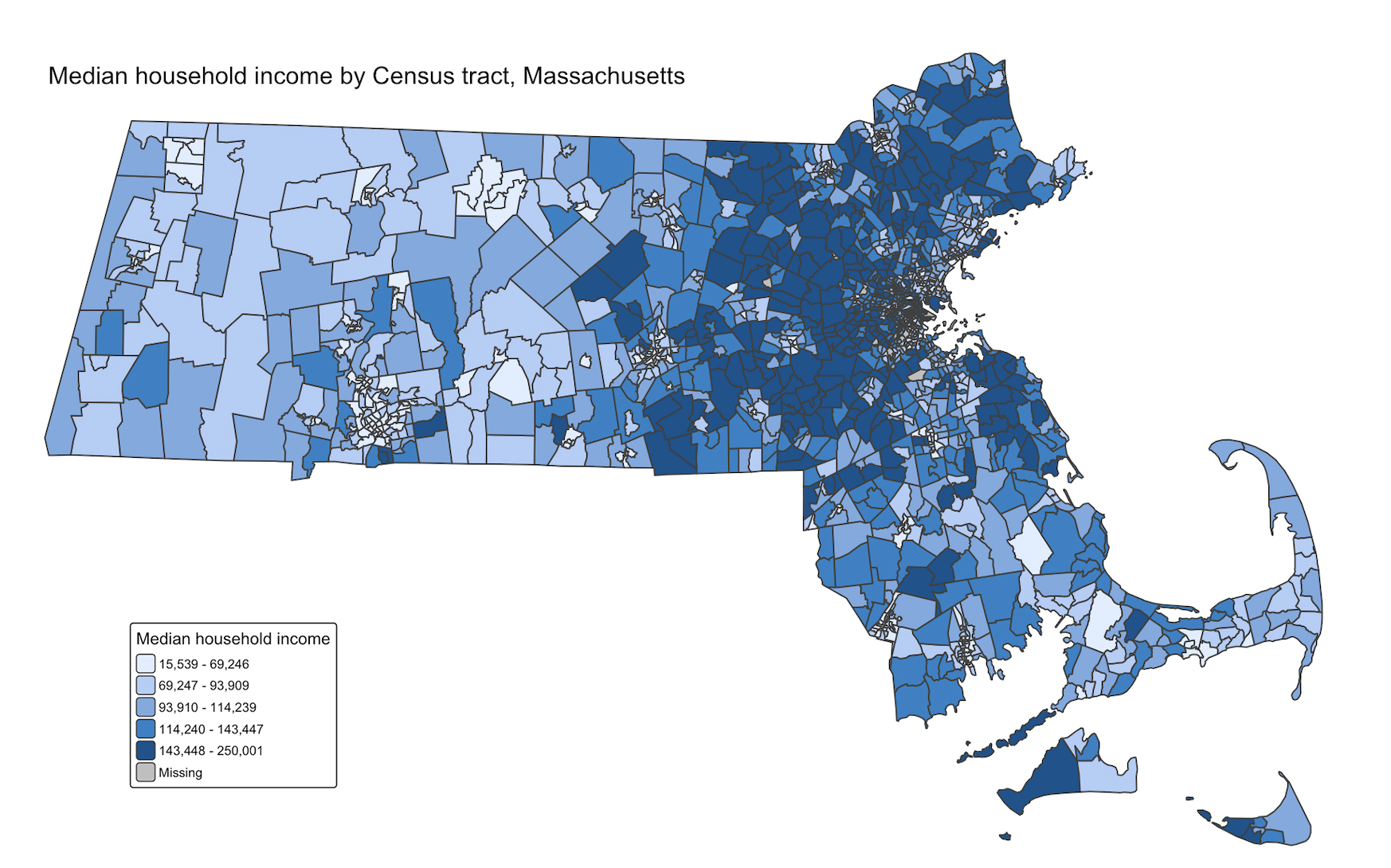 title = "Median household income by Census tract, Massachusetts",
