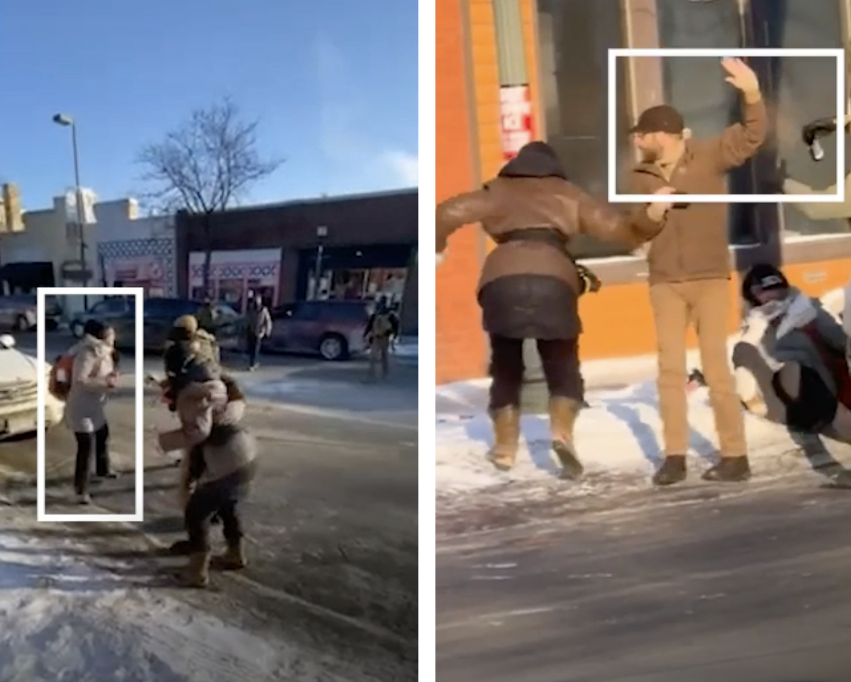 Yeah, I think that was a big thing for us. There were very specific things that Belle and I wanted the reader to see: we wanted them to see from the beginning of the interaction a little bit more of what Pretti was doing because a lot of the news cycle that day had been focused on the shooting itself. So we wanted to give a lot of context up until then, where he had a phone in his hand, when Pretti was with two other civilians, walking away from the federal agents that another agent came and pushed one of the people that he was with and Pretti got in between them. Showing that moment, I thought, was important because immediately after that happened, he and the group were pepper-sprayed by the federal agent. And even though those clips were half a second apart from each other, I wanted to break out those actions for readers to pay attention to; I wanted to make sure people were seeing those beats. And that was a lot of what we were trying to do with the call outs.