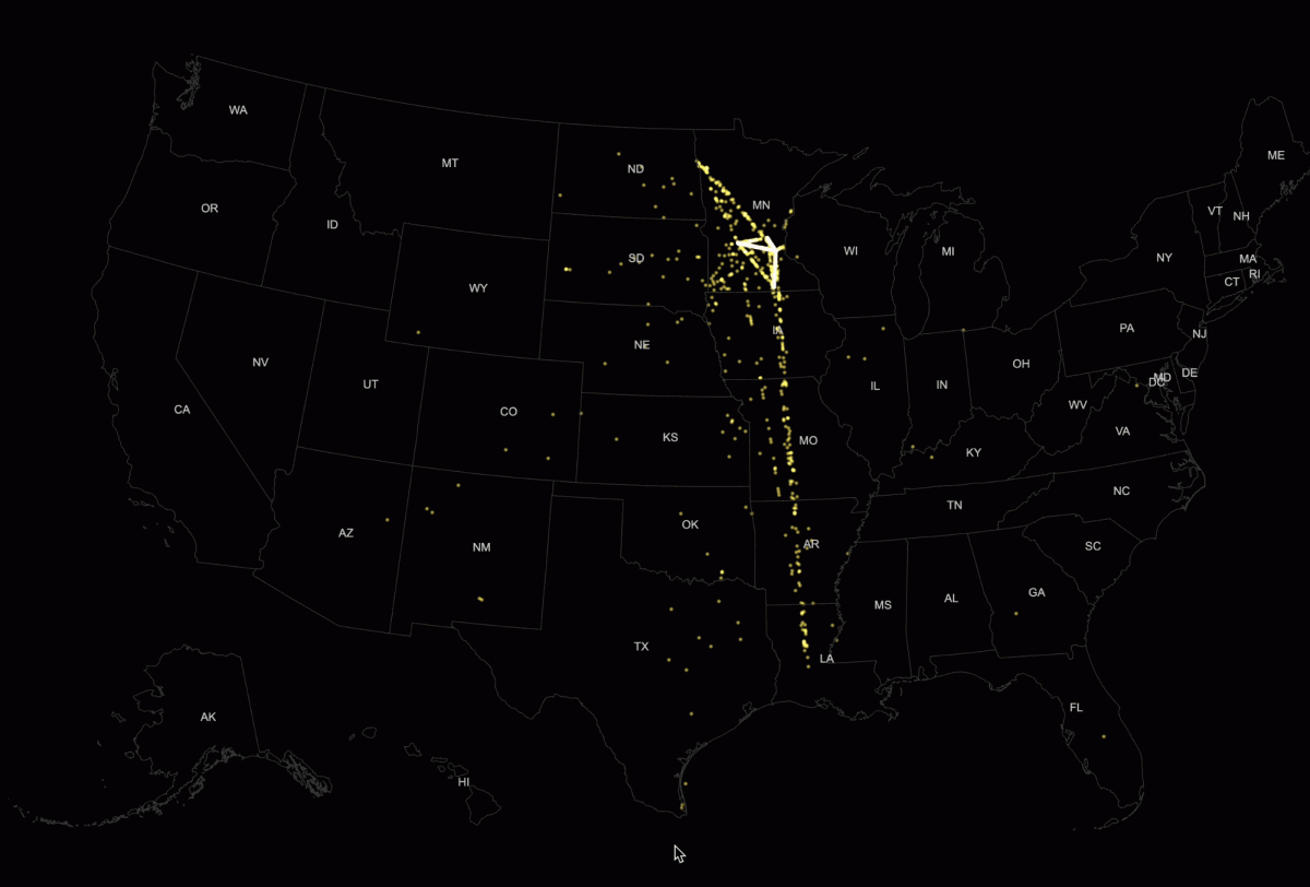 Rendering the map on canvas allowed for smoother animation and better performance across screen sizes. I started the experiment with a much smaller data sample on Minnesota-related people, this helped test the visual concept before applying full data.