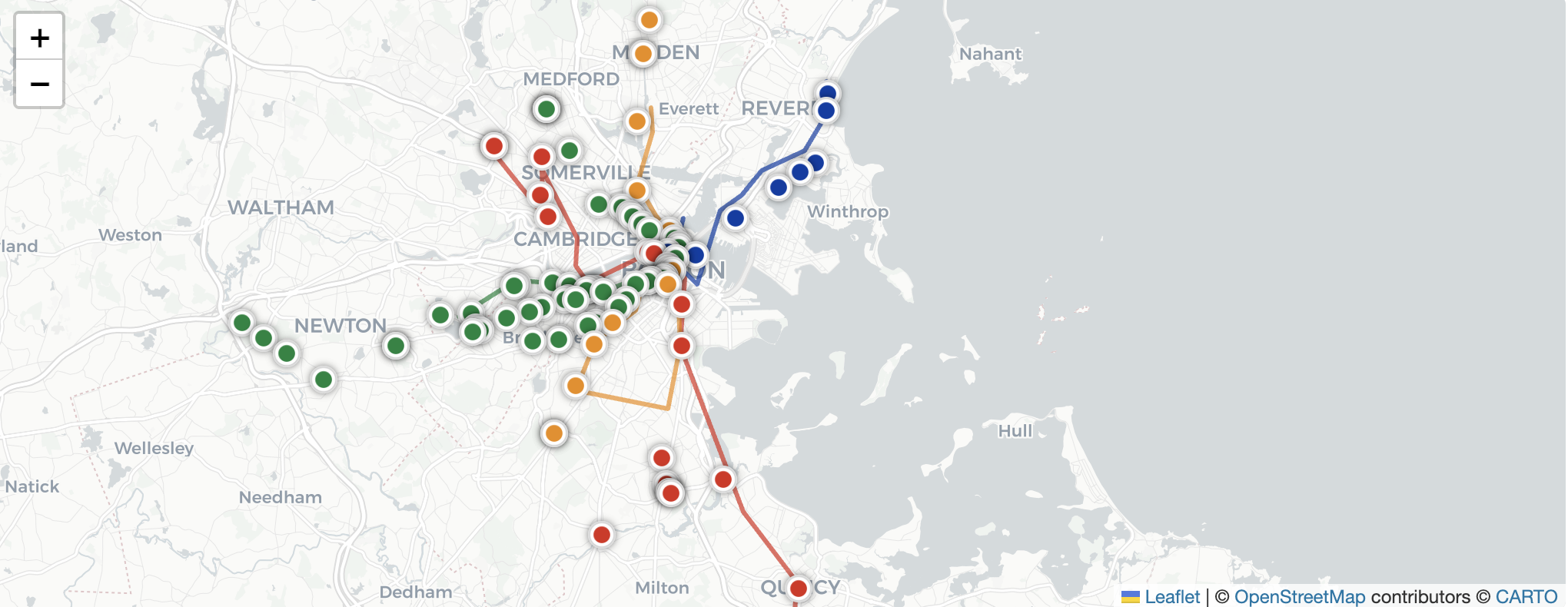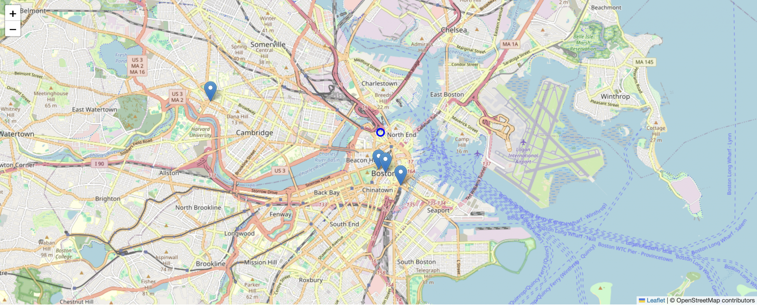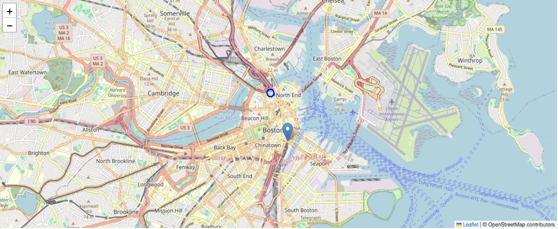 L.marker([42.3523, -71.0550]).addTo(map).bindPopup("South Station");