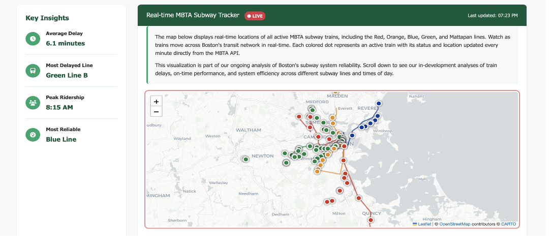 1. API Endpoint: We use https://api-v3.mbta.com/vehicles which provides current positions of all trains